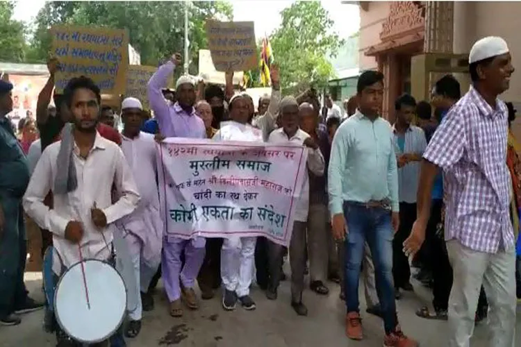 रविवार को हर साल की तरफ इस साल एक बार फिर रथयात्रा से पहले मुस्लिम समुदाय के लोगों ढोल नगाड़ों की थाप पर शहर के कई इलाकों से होते हुए जगन्नाथ मंदिर पहुंचे और मंदिर के महंत को चांदी का रथ अर्पण किया।