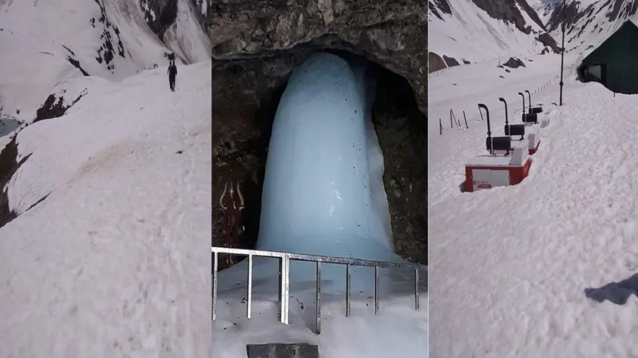 इस वक्त ट्रैक पर पिछले सालों के मुकाबले कई गुना ज्यादा बर्फ रास्ते में है। दावा किया जा रहा है कि कई जगहों पर तो दस से बीस फीट तक बर्फ की चादर बिछी हुई है। अमरनाथ के रास्ते की ये तस्वीरें पंजतरणी और शेषनाग में ली गई हैं। इस साल यात्रा 23 जून को शुरू होनी है और 3 अगस्त रक्षा बंधन वाले दिन खत्म होनी है, लेकिन हालात को देखते हुए कुछ भी कहना मुश्किल है। 23 अप्रैल को खुद श्राइन बोर्ड ने ही यात्रा के शुरू होने को लेकर सवाल उठा दिए थे।