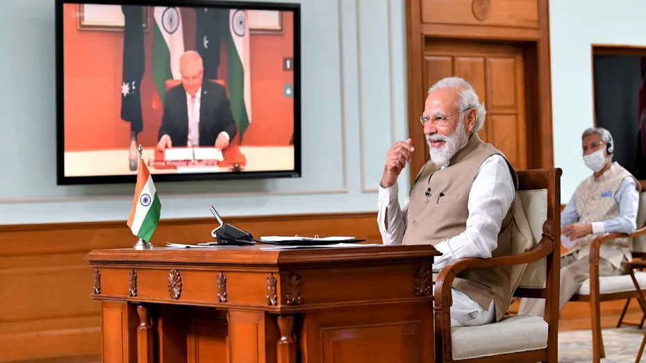 वर्चुअल मुलाकात समोसा-खिचड़ी कूटनीति के साथ खत्म हुई। मॉरीसन ने कहा, ‘‘मैं समोसे के लिये आपका शुक्रिया अदा करता हूं, सप्ताहांत में इसे लेकर हमने खूब आनंद उठाया है।’’ उन्होंने इस बारे में ट्वीट करते हुए यह बात कही। उन्होंने कहा कि उनकी दिली इच्छा थी कि वह उस चीज के लिये वहां पहुंच पाते, जो मोदी की झप्पी के रूप में मशहूर है और आमने सामने की मुलाकात में वह भारतीय समकक्ष से अपना समोसा साझा कर पाते।