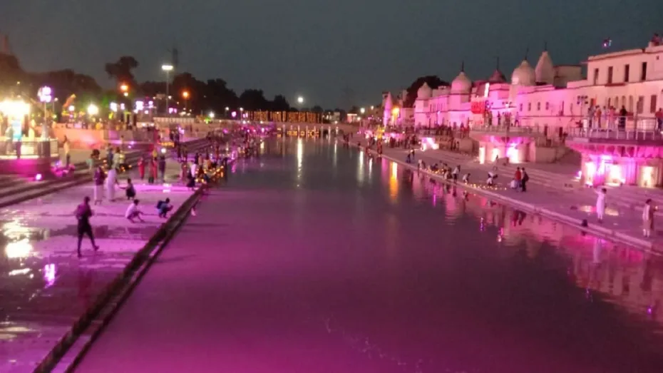 कल राम मंदिर के शिलान्यास समारोह से पहले अयोध्या को रोशनी से जगमग किया गया है।