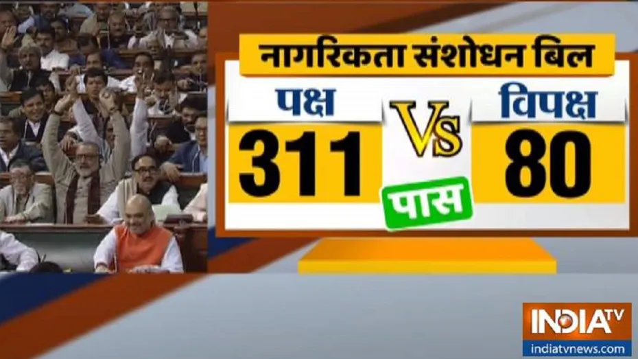 नई दिल्ली: सिटीजनशिप अमेंडमेंट बिल लोकसभा में पास हो गया है। मोदी सरकार द्वारा लोकसभा में पेश किए गए नागरिकता संशोधन बिल के पक्ष में 311 वोट पड़े जबकि विपक्ष में 80 वोट पड़े। इस बिल को पास करने से पहले संसद में चर्चा करते हुए अमित शाह ने कहा कि जब तक नरेंद्र मोदी देश के प्रधानमंत्री हैं, जब तक भारत सरकार का धर्म संविधान ही है और देश में किसी धर्म के लोगों को डरने की जरूरत नहीं है। उन्होंने लोकसभा में नागरिकता संशोधन विधेयक पर हुई चर्चा का जवाब देते हुए कहा कि यह विधेयक लाखों करोड़ों शरणार्थियों को यातनापूर्ण नरक जैसे जीवन से मुक्ति दिलाने का साधन बनने जा रहा है जो लोग भारत के प्रति श्रद्धा रखते हुए हमारे देश में आए, उन्हें नागरिकता मिलेगी। शाह ने कहा कि देश में एनआरसी आकर रहेगा और जब एनआरसी आयेगा तब देश में एक भी घुसपैठिया बच नहीं पायेगा।