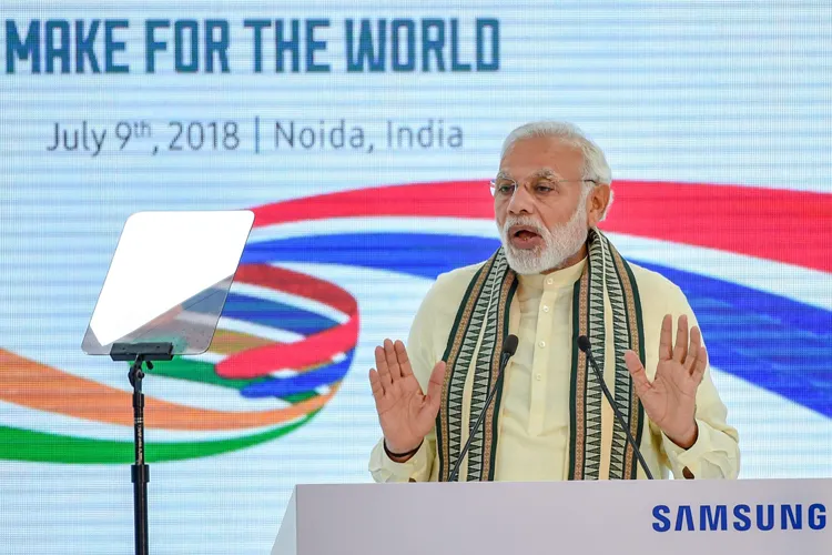 नोएडा (उ. प्र.): प्रधानमंत्री नरेन्द्र मोदी ने आज कहा कि सरकार के ‘मेक इन इंडिया’ कार्यक्रम से प्रोत्साहन पाकर भारत दुनिया में दूसरा बड़ा मोबाइल फोन निर्माता बन गया है। पिछले चार साल में मोबाइल फोन बनाने वाले कारखानों की संख्या दो से बढ़कर 120 पर पहुंच गई है। प्रधानमंत्री आज यहां दिल्ली से सटे नोएडा में दक्षिण कोरिया की बहुराष्ट्रीय कंपनी सैमसंग के मोबाइल विनिर्माण कारखाने के उद्घाटन समारोह में बोल रहे थे। इस अवसर पर उनके साथ दक्षिण कोरिया के राष्ट्रपति मून जे इन भी मौजूद थे।