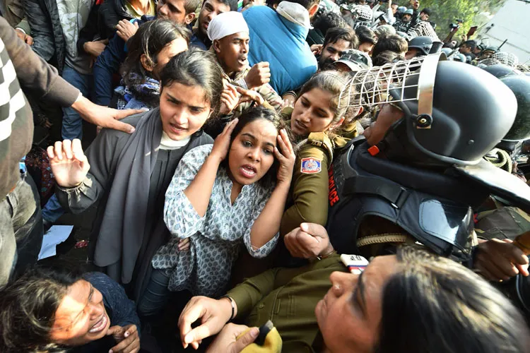 नई दिल्ली: जामिया मिलिया इस्लामिया के छात्रों द्वारा घोषित संसद मार्च के दौरान एक रोचक दृश्य तब देखने को मिला, जब महिला प्रदर्शनकारियों ने दिल्ली पुलिस को लक्ष्य कर अपनी चूड़ियां लहराईं। छात्राओं ने कहा कि दिल्ली पुलिस इसलिए मार्च को आगे नहीं बढ़ने दे रही है, क्योंकि भाजपा नेतृत्व वाली केंद्र सरकार ने उसे रोकने का निर्देश दिया है। उन्होंने कहा कि दिल्ली पुलिस को चूड़ियां पहन लेनी चाहिए, क्योंकि वह मार्च को आगे बढ़ने नहीं दे रही है।