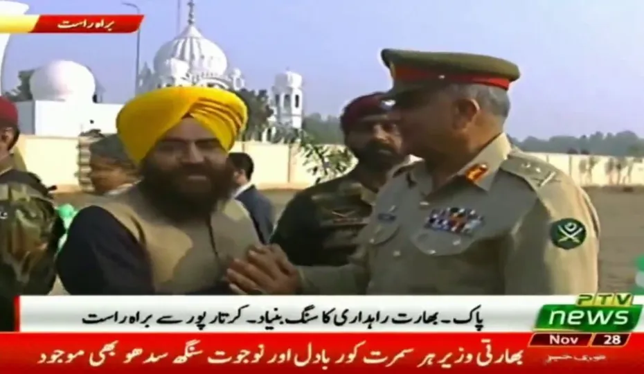नई दिल्ली। भारत में आतंक फैलाने वाले गुनहगारों को पाकिस्तान पनाह देता है इसका सबसे ताजा सबूत पाकिस्तान में करतारपुर कॉरिडोर पर काम शुरू होने को लेकर हो रहे कार्यक्रम में दिखा है। कार्यक्रम के दौरान खालिस्तानी समर्थक नेता गोपाल चावला को देखा गया जो पाकिस्तान आर्मी चीफ के साथ हाथ मिला रहा था, पाकिस्तान के सरकारी टेलिविजन चैनल पीटीवी ने खुद उसके विजुअल दिखाए हैं।