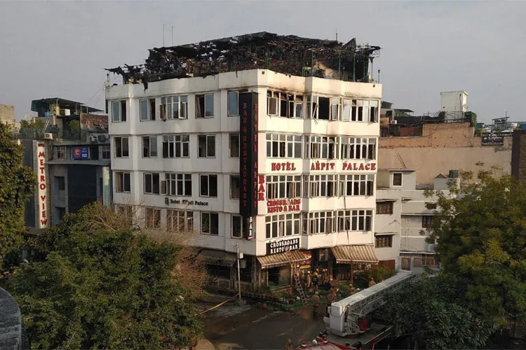 नई दिल्ली: देश की राजधानी दिल्ली के करोल बाग में स्थित एक होटल में आग लगने से 17 लोगों की जान चली गई और 4-5 लोग घायल हो गए। दिल्ली के स्वास्थ्य मंत्री सत्येंद्र जैन ने बताया कि दिल्ली सरकार ने करोलबाग आग हादसे की मजिस्ट्रेट जांच के आदेश दे दिए हैं। पुलिस ने बताया कि आग करोलबाग में गुरुद्वारा रोड स्थित होटल अर्पित पैलेस में लगी। रिपोर्ट्स के मुताबिक, मंगलवार सुबह 4:30 बजे के आसपास होटल अर्पित पैलेस के टॉप फ्लोर पर कथित रूप से शॉर्ट सर्किट के कारण आग लग गई, जिसके बाद 2 लोगों ने जान बचाने के लिए चौथी मंजिल से छलांग लगा दी। बताया जा रहा है कि आग पहले टॉप फ्लोर में लगी, फिर तेजी से नीचे के फ्लोर की तरफ बढ़ने लगी।