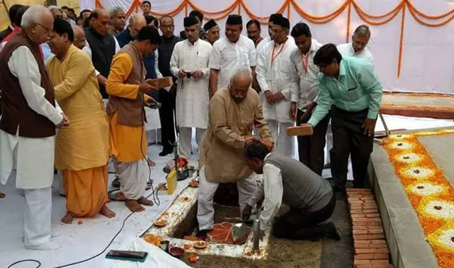 भवन की आधारशिला रखने के लिए आयोजित समारोह में कई भाजपा नेताओं और केंद्रीय कैबिनेट मंत्रियों ने हिस्सा लिया। इनमें भाजपा अध्यक्ष अमित शाह, गृह मंत्री राजनाथ सिंह, उर्जा मंत्री पीयूष गोयल, विग्यान एवं प्रौद्योगिकी मंत्री हर्षवर्धन और खेल मंत्री विजय गोयल शामिल थे।