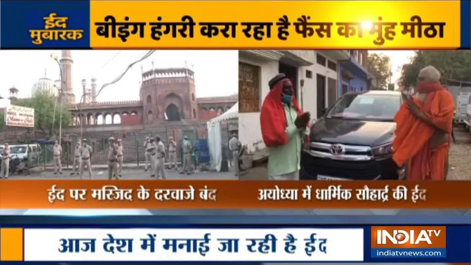 वहीं अयोध्या में ईद मिलाप का अलग ही रंग देखने को मिला। राम मंदिर मामले से जुड़े महंत धर्मदास बाबरी मस्जिद के पक्षकार इकबाल अंसारी के घर पहुंचे और उन्हें ईद की बधाई दी।