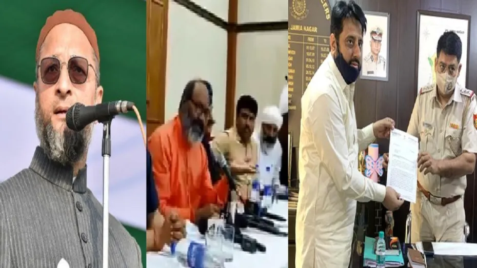 नई दिल्ली। इस्लाम और पैगंबर मोहम्मद के खिलाफ महंत यति नरसिंहानंद सरस्वती द्वारा की गई आपत्तिजनक टिप्पणी पर विवाद हो गया है। आप विधायक अमानतुल्लाह खान और एआईएमआईएम अध्यक्ष और सांसद असदुद्दीन ओवैसी ने दिल्ली में प्रेस क्लब ऑफ इंडिया में हुई एक प्रेस कॉन्फ्रेंस के दौरान कथित रूप से इस्लाम और पैगंबर मोहम्मद को लेकर की गई आपत्तिजनक टिप्पणी पर नाराजगी जताई है। असदुद्दीन ओवैसी ने दिल्ली पुलिस को उसकी जिम्मेदारी याद दिलाई है। वहीं पुलिस ने सोशल मीडिया पर वायरल वीडियो का संज्ञान लेते हुए पार्लियामेंट स्ट्रीट थाने में एक एफआईआर दर्ज की है।