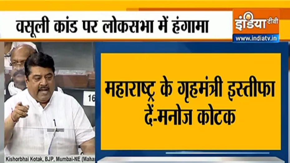 मुंबई उत्तर पूर्व से भारतीय जनता पार्टी सांसद मनोज कोटक ने कहा कि महाराष्ट्र जैसे प्रगतिशील राज्य में जो पिछले दिनो से घटना चल रही है और उस घटना में जिस तरह के मामले सामने आ रहे हैं कि पुलिस अधिकारी मुख्यमंत्री की चिट्ठी लिखता हौ उसमें महाराष्ट्र के गृह मंत्री के बारे में बताता है कि एक पुलिस अधिकारी को बुलाकर 100 करोड़ की उगाही करने के लिए कहता है।