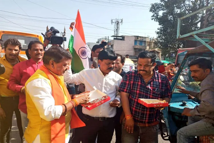 नई दिल्ली: पाकिस्तान स्थित आतंकी ठिकानों पर हमले के बाद देश में जश्न का माहौल देखने को मिल रहा है। भाजपा नेता कैलाश विजयवर्गीय ने लोगों को मिठाइयां बांटी और ट्वीट कर कहा कि आज मंगलवार के दिन "ब्रम्ह मुहूर्त में दुष्टों का संहार" करने पर #IndianAirForce को बहुत-बहुत बधाई। इसके अलावा पटना, इंदौर, चंडीगढ़ और मुजफ्फरपुर से लोगों दवारा जश्न मनाए जानें की खबरे आ रही है।