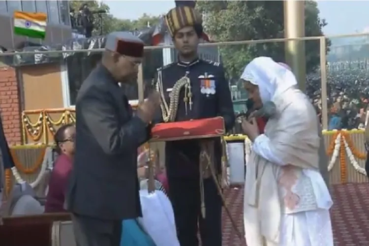 नई दिल्ली: लांस नायक नजीर अहमद वानी को मरणोपरांत मिले अशोक चक्र सम्मान को शनिवार को उनकी पत्नी ने गणतंत्र दिवस के अवसर पर ग्रहण किया। वानी ने जम्मू एवं कश्मीर में शहीद होने से पहले दो आतंकवादियों को मौत के घाट उतार दिया था।