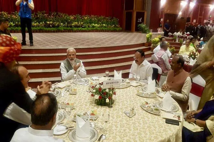 रात्रिभोज के लिए संसदीय कार्य मंत्रालय की ओर से दोनों सदनों के 750 से अधिक सदस्यों को आमंत्रण भेजा गया था। होटल अशोक में आयोजित रात्रिभोज में राज्यसभा में नेता प्रतिपक्ष गुलाम नबी आजाद के अलावा राजग और कई अन्य दलों के विभिन्न नेता भी शामिल हुए। इनमें द्रमुक की कनिमोई, आप के राज्यसभा सदस्य संजय सिंह, भाजपा में शामिल हुए तेदेपा के तीन राज्यसभा सदस्य वाई एस चौधरी, सी एम रमेश और टी जी वेंकटेश भी शामिल थे।