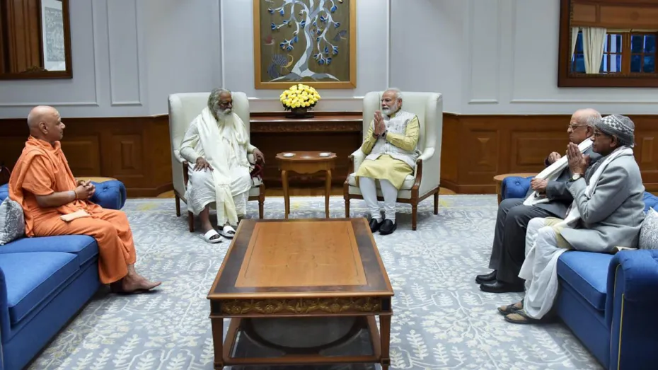 नई दिल्ली: राम मंदिर ट्रस्ट के अध्यक्ष महंत नृत्य गोपाल दास समेत ट्रस्ट के सदस्यों ने गुरूवार को प्रधानमंत्री नरेंद्र मोदी से यहां उनके आवास पर मुलाकात की। अयोध्या में राम मंदिर निर्माण के लिए हाल ही में गठित श्री राम जन्मभूमि तीर्थ क्षेत्र की पहली बैठक बुधवार को हुई थी। ट्रस्ट के महासचिव विश्व हिंदू परिषद नेता चंपत राय और कोषाध्यक्ष स्वामी गोविंद देव गिरि भी बैठक में उपस्थित थे।