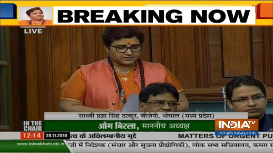 संसद में साध्वी प्रज्ञा जब अपने बयान को लेकर माफी मांग रही थी और बयान पर सफाई दे रहीं थी तो संसद में हंगामा शुरू हो गया। साध्वी प्रज्ञा ने कहा कि उनके खिलाफ उस समय की सरकार ने षडयंत्र रचा था। उन्होंने कहा कि उनके खिलाफ रचे गए षडयंत्रों के बावजूद न्यायालय में उनके खिलाफ आरोप सिद्ध नहीं हुआ है। उन्होंने कहा कि उनको आतंकवादी कहना कानून के खिलाफ है। साध्वी प्रज्ञा ने कहा कि कोई आरोप सिद्ध हुए बिना उनको आतंकी बताना एक महिला के नाते, एक सन्यासी के नाते, एक सांसद के नाते उनके अपमानित करके का प्रयास किया गया है। साध्वी प्रज्ञान ने कहा कि आरोप सिद्ध नहीं होने के बावजूद एक महिला होते हुए उस समय की सरकार द्वारा शारिरिक और मानसिक रूप से प्रताड़ित किया गया।