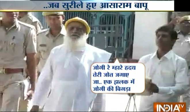 पिछली कई बार जब आसाराम पेशी पर आते थे तो टेंशन में दिखाई देते थे। आसाराम ने एक बार कहा था कि पुरानी बीमारी फिर से परेशान कर रही है। लेकिन मंगलवार को वह ‘जोगी तेरे प्यार में....’ गाना गुनगुनाते और नाचने के अंदाज में भी दिखे।