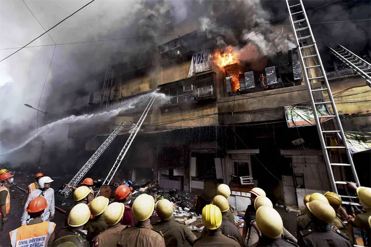 कोलकाता: पश्चिम बंगाल की राजधानी कोलकाता के भीड़भाड़ वाले बागड़ी मार्केट में रविवार को तड़के करीब 1,000 दुकानों वाली एक बहुमंजिला इमारत में भयंकर आग गई। दमकल विभाग के एक वरिष्ठ अधिकारी ने बताया कि इसमें किसी के हताहत होने की खबर नहीं है लेकिन 2 दमकलकर्मी आग बुझाते समय मामूली रूप से झुलस गए। यह बाजार भारतीय रिजर्व बैंक के कार्यालय और राइटर्स बिल्डिंग से लगभग एक किलोमीटर दूर है। पश्चिम बंगाल अग्निशमन एवं आपातकालीन सेवाओं के महानिदेशक जगमोहन ने कहा कि आग पर काबू पाने में 24 से 48 घंटे लगेंगे।