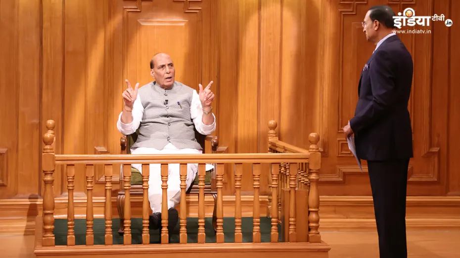 इंडिया टीवी के सुपरहिट शो 'आप की अदालत' में रक्षा मंत्री राजनाथ सिंह ने शिरकत की। इस दौरान उन्होंने रजत शर्मा के सभी सवालों का बेबाकी से जवाब दिया। राजनाथ सिंह ने अरविंद केजरीवाल की गिरफ्तारी, लोकसभा चुनाव से लेकर अपने भारत-पाक और भारत-चीन के मुद्दे पर पूछे गए सवालों का विस्तार से जवाब दिया। आप की अदालत में रक्षा मंत्री राजनाथ सिंह ने जब रजत शर्मा ने ये सवाल किया कि क्या चीन भारत पर आक्रमण कर सकता है? इस पर रक्षा मंत्री ने कहा कि परमात्मा उनको सद्बुद्धि दे कि वो ऐसी हरकत न करें।