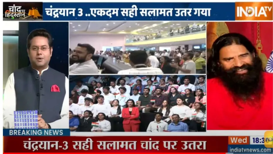 इसरो ने चंद्रयान 3 को सफलतापूर्वक चंद्रमा की सतह पर लैंड कराकर इतिहास रच दिया है। चंद्रमा के साउथ पोल पर इसरो ने सफल लैंडिंग कराकर ऐसा कीर्तिमान रचा है जिसकी पूरी दुनिया वाहवाही कर रही है। चंद्रयान 3 की सफल लैंडिंग के बाद देश के कई दिग्गज देश को बधाई दे रहे हैं। इसी कड़ी में बाबा रामदेव ने भी इंडिया टीवी से खास बातचीत की। चंद्रयान-3 की सफलता पर बाबा रामदेव ने कहा कि हमने आज इतिहास रचा है। हमने आज चांद पर विजय प्राप्त किया है, चांद पर विजय के बाद अब भारत ब्रह्मांड की यात्रा पर निकलेगा।