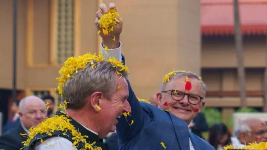 अहमदाबाद: ऑस्ट्रेलिया के प्रधानमंत्री एंथनी अल्बनीज 4 दिनों के भारत दौरे पर हैं। बुधवार को उन्होंने गुजरात की राजधानी गांधीनगर स्थित राजभवन में होली मनाई और कहा कि रंगों का त्योहार बुराई पर अच्छाई की जीत का प्रतीक है। राज्य सरकार की एक विज्ञप्ति में कहा गया है कि अल्बनीज का गुजरात के राज्यपाल आचार्य देवव्रत और मुख्यमंत्री भूपेंद्र पटेल ने राजभवन के समारोह में स्वागत किया और उनके चेहरे पर गुलाल लगाया। इसके बाद एंथनी अल्बनीज ने ट्विटर पर समारोह के फोटो पोस्ट करते हुए लिखा कि भारत के अहमदाबाद में होली मनाकर खुद को सम्मानित महसूस कर रहा हूं।
