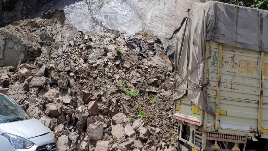 बद्रीनाथ हाईवे पर चट्टान गिरने से 2 वाहन क्षतिग्रस्त