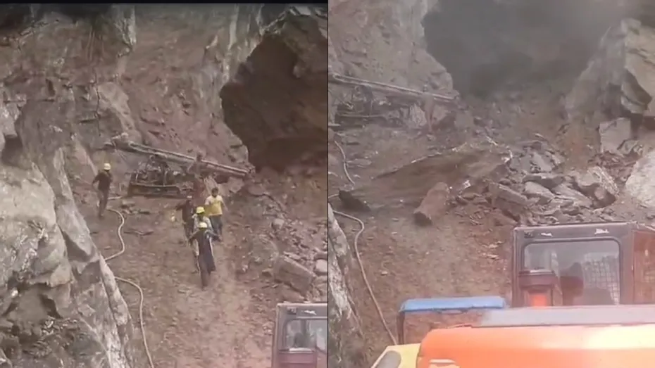 बद्रीनाथ नेशनल हाईवे का डरावना वीडियो सामने आया है। यहां सड़क निर्माण में लगे कुछ मजदूरों और ड्रिलिंग मशीन चला रहे कर्मचारी की जान बाल-बाल बच गई। ड्रिलिंग के दौरान एक बड़ा पत्थर मशीन के ऊपर आ गिरा। हालांकि, मशीन चला रहे टेक्नीशियन और मजदूरों ने भागकर अपनी जान बचा ली, लेकिन इस घटना के बाद हाइवे साफ करने का काम फिर से रुक गया है। ऐसे में यहां फंसे तीर्थयात्रियों के बाहर निकलने का इंतजार बढ़ गया है।