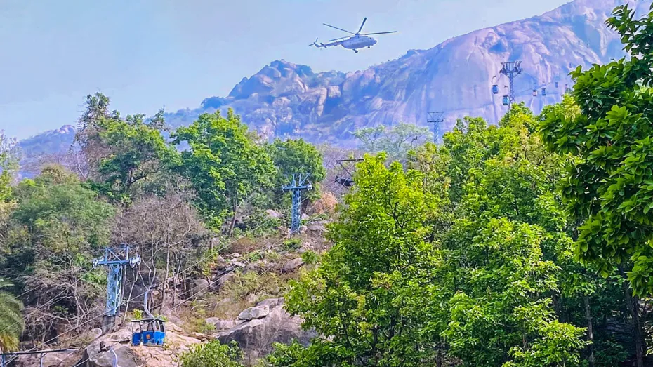 देवघर/रांची: देवघर के रोपवे हादसे के बाद ट्रॉलियों में फंसे 35 लोगों का रेस्क्यू कर लिया गया है। 25 हजार फीट की ऊंचाई पर चार ट्रॉलियों में 13 से 15 लोग अब भी फंसे हुए हैं। सोमवार शाम करीब पांच बजे एयरलिफ्ट किये जाने के दौरान नीचे गिर जाने से एक युवक की मौत हो गयी। इसके बाद अंधेरा होने की वजह से रेस्क्यू ऑपरेशन रोक दिया गया है। मंगलवार सुबह से ऑपरेशन फिर शुरू होगा। हादसे में अब तक तीन लोगों की जान चली गयी है। एक दर्जन लोग जख्मी हुए हैं, जबकि रेस्क्यू किये गये लोगों में आधा दर्जन लोग बीमार हो गये हैं। इन सभी का देवघर के स्थानीय अस्पताल में इलाज चल रहा है।