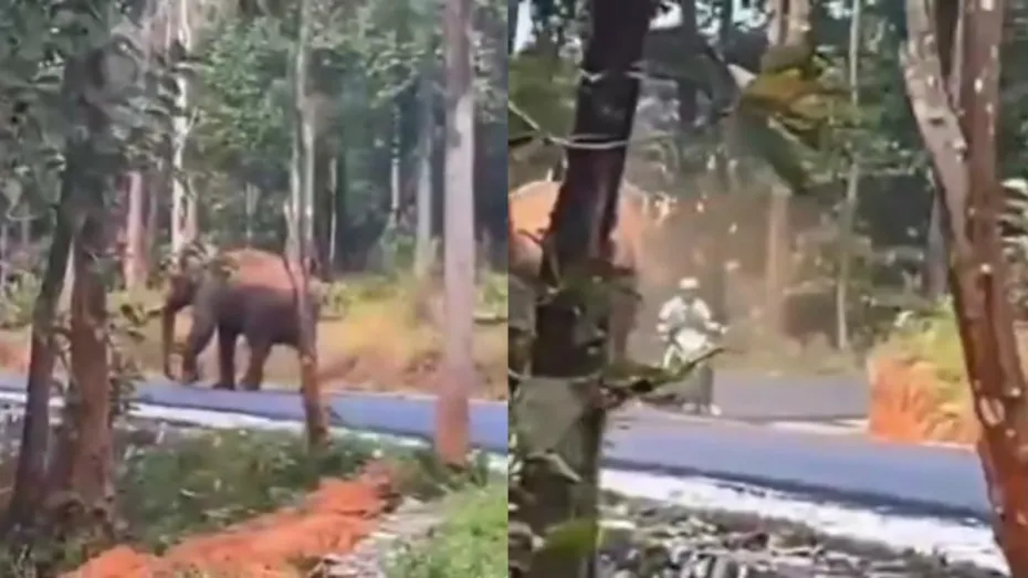 केरल के वायनाड जिले के तिरुनेल्ली अट्टापारा इलाके से एलिफैंट अटैक का एक डराने वाला वीडियो सामने आया है। एक बाइक सवार पर हाथी ने अचानक हमला कर दिया। यह घटना शनिवार की बताई जा रही है। बाइक पर अपने परिवार के साथ जा रहे व्यक्ति पर जंगल के अंदर से आए हाथी ने अचानक हमला कर दिया। घटना का वीडियो सामने आया है।