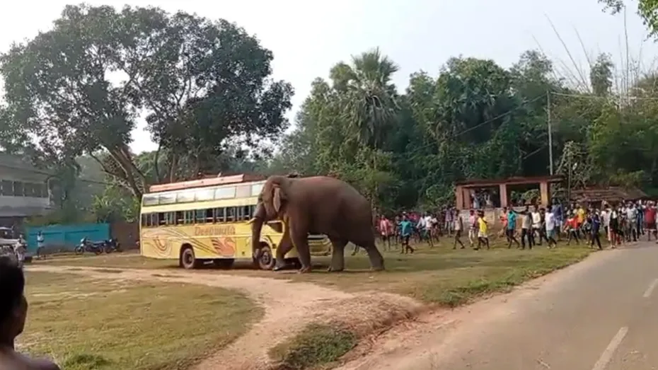 मयूरभंज: ओडिशा के मयूरभंज जिले में शनिवार को एक बड़ा हादसा हुआ है। बेतनटी ब्लॉक के मर्दा से सारसकणा जा रही एक बस पर एक जंगली हाथी ने अचानक हमला कर दिया। हाथी ने बस को अपनी सूंड से धक्का देकर पलटाने की कोशिश की, जिससे यात्रियों में भगदड़ मच गई।