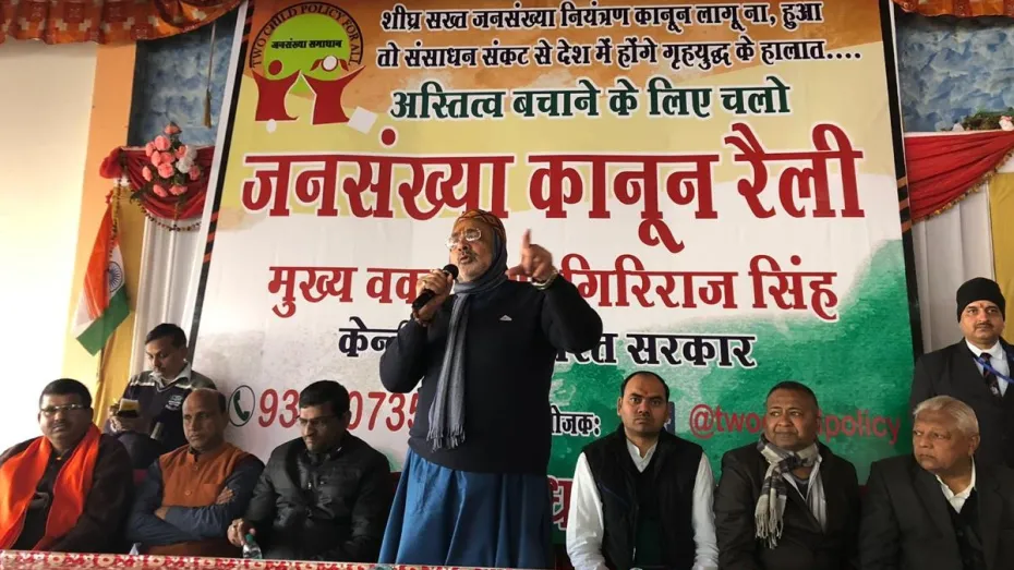 जनसंख्या नियंत्रण कानून पर एक बार फिर माहौल गरमा गया है। केंद्रीय मंत्री गिरिराज सिंह ने ऐलान किया है कि जल्द ही देश में जनसंख्या नियंत्रण कानून लागू होगा। दिल्ली के जंतर मंतर पर सभा के दौरान गिरिराज ने कहा कि मोदी जी ने हर वो काम किया जो राष्ट्र के लिए जरूरी था। अगर जनसंख्या रोकने का काम नहीं किया तो आने वाले दिन में संकट होगा। मोदी जी ने 1 देश 1 कानून लाने का काम किया। 370 हटाई, 3 तलाक के खिलाफ कानून लाए, UP, गुजरात और MP में कॉमन सिविल कोड लाने का संकल्प लिया है। अब जनसंख्या नियंत्रण कानून लाने की जरूरत है और इसे कोई नहीं रोक सकता है।