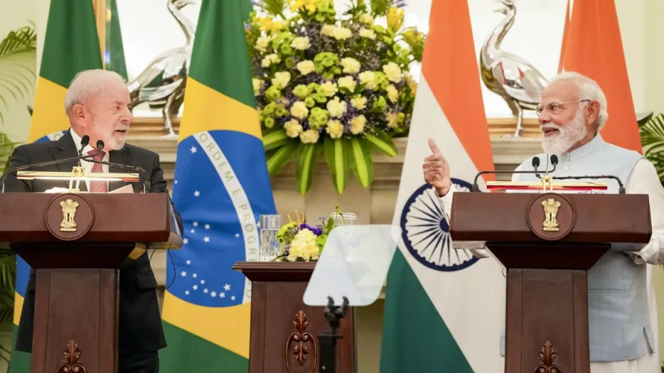 India Brazil Bilateral Talks: प्रधानमंत्री Narendra Modi ने आज (शनिवार को) नई दिल्ली के हैदराबाद हाउस में Brazil के राष्ट्रपति Luiz Inácio Lula da Silva के साथ अहम बातचीत की। विदेश मंत्रालय के मुताबिक, इन चर्चाओं का मकसद बिजनेस, एनर्जी, डिफेंस, एग्रीकल्चर, क्लाइमेट चेंज, टेक्नोलॉजी, AI, क्रिटिकल मिनरल्स, सेमीकंडक्टर और ग्लोबल साउथ के सहयोग समेत भारत-ब्राजील की स्ट्रैटेजिक पार्टनरशिप को और ज्यादा मजबूत करना रहा। जानें भारत-ब्राजील की द्विपक्षीय वार्ता में क्या-क्या बातें हुईं।