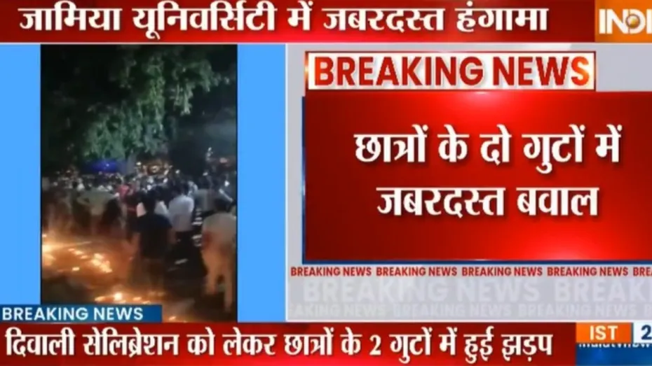दिल्ली की जामिया यूनिवर्सिटी में बवाल की खबर सामने आई है। जानकारी के मुताबिक, दिवाली सेलिब्रेशन को लेकर छात्रों के 2 गुटों में झड़प हुई है। दिल्ली पुलिस के सूत्रों के मुताबिक दिवाली से पहले कुछ हिंदू छात्रों ने दिवाली सेलिब्रेशन के लिए दीए जलाए थे। इस दौरान कुछ मुस्लिम छात्र वहां आ गए और विरोध करने लगे। इसके बाद दोनों गुटों में झड़प हुई है। आइए जानते हैं पूरा मामला।