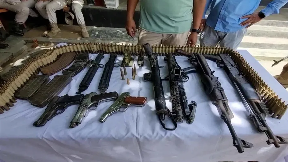 शिवकांत ने बताया, 'आज सुबह कैरांग अवांग लेइका और खोमिदोक के पास 4 हथियार तस्करों को पकड़ा गया। पूछताछ करने पर उन्होंने बताया कि वे पुलिस से चुराए गए हथियार और गोला-बारूद बेच रहे थे। इस दौरान एक 9 मिमी कार्बाइन, एक .22 पिस्तौल, दो 5.56 मिमी इंसास मैगजीन, एक 303 एलएमजी मैगजीन, 21 संख्या में 7.62 मिमी गोला बारूद और 2.5 लाख रुपये नकद बरामद हुए हैं।