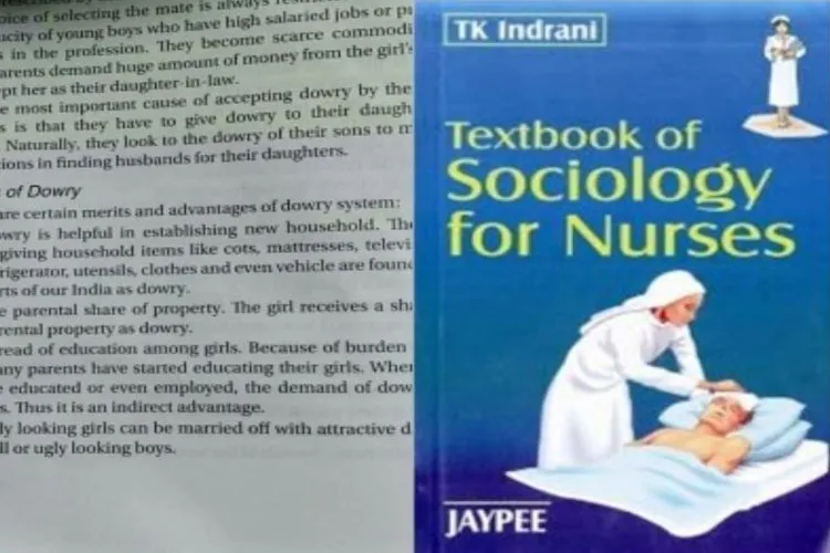 मुंबई: एक महत्वपूर्ण घटनाक्रम में, दहेज प्रथा के 'वरदानों' पर आधारित कॉलेज में पढ़ाई जाने वाली समाजशास्त्र की एक पाठ्यपुस्तक के प्रकाशकों ने मंगलवार को कहा कि उन्होंने किताब को तत्काल बाजार से वापस लेने का फैसला किया है। नई दिल्ली स्थित जेपी ब्रदर्स मेडिकल पब्लिशर्स प्राइवेट लिमिटेड की प्रवक्ता समीना खान ने बताया, "हम सूचित करना चाहते हैं कि हमने बाजार से (पाठ्य) पुस्तक को वापस लेने के लिए तत्काल कदम उठाए हैं। हम ऐसे मामलों को अत्यंत गंभीरता से लेते हैं और भविष्य में ऐसी घटनाओं से बचने के लिए आंतरिक प्रक्रियाओं को मजबूत करना जारी रखेंगे।"