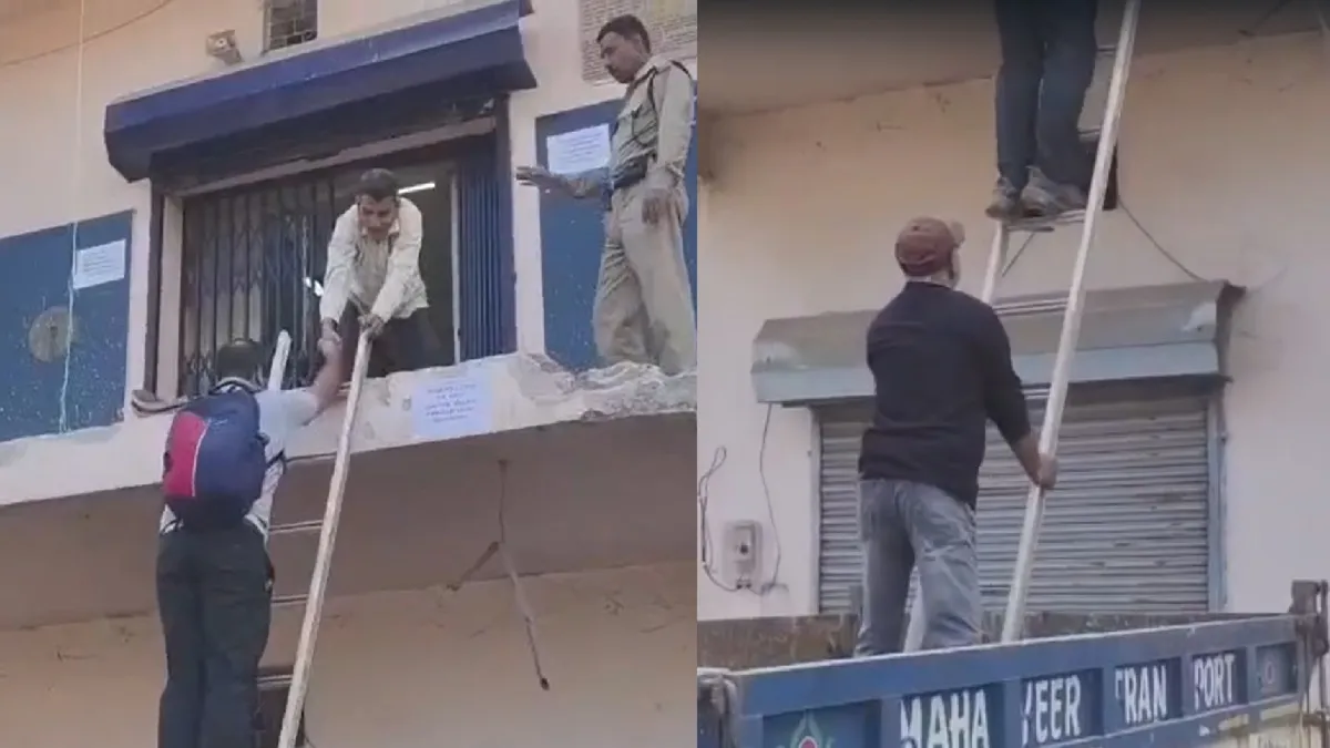 जानकारी के अनुसार, चरम्पा इलाके में जबरदस्ती किए गए अतिक्रमण हटाने के बाद यह स्थिति पैदा हुई है। एक्शन के बाद बैंक का सामान्य प्रवेश मार्ग बंद हो गया, जिससे लोगों की आवाजाही बाधित हो गई। ऐसे में बैंक प्रबंधन या स्थानीय लोगों ने अस्थायी व्यवस्था के रूप में ट्रैक्टर पर सीढ़ी रखकर रास्ता बनाया।