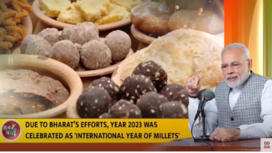 प्रधान मंत्री नरेंद्र मोदी ने कहा, "इस 'मन की बात' के लिए, मैंने आपसे फिट इंडिया के बारे में इनपुट भेजने का अनुरोध किया था। आपकी प्रतिक्रिया से मुझे बहुत खुशी हुई। स्टार्टअप्स ने भी मुझे नमो ऐप पर कई सुझाव भेजे हैं। उन्होंने अपने अनूठे प्रयासों के बारे में बात की है।" .भारत के प्रयासों के कारण, 2023 को अंतर्राष्ट्रीय मिलेट ईयर के रूप में मनाया गया।"