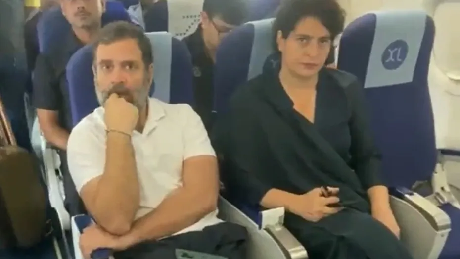 सूरत की फ्लाइट में साथ बैठे दिखें राहुल-प्रियंका