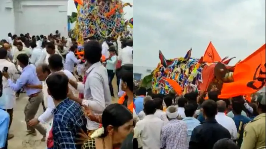 Karnataka: कर्नाटक के चामराजनगर जिले में मंगलवार को एक बड़ा हादसा होने से टल गया। यहां मंदिर के रथ का एक हिस्सा टूटकर श्रद्धालुओं पर गिर गया। दरअसल, चामराजनगर में रथ उत्सव के मौके पर जुलूस में बड़ी संख्या में लोग जुटे हुए थे। इस दौरान लोगों के ऊपर श्रीवीरभद्रेश्वर मंदिर के रथ का हिस्सा पलटकर गिर गया।