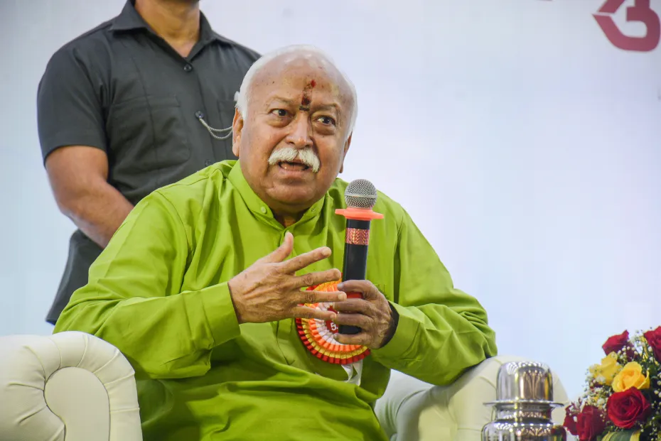 यह संगोष्ठी बस कुछ चुनिंदा अतिथियों के लिए खुली थी। भागवत ने कहा कि भारत तो 1947 में ही स्वाधीन हो गया लेकिन लोगों ने अपना ‘स्व’ समझने में देर कर दी। उन्होंने कहा कि बी आर आंबेडकर ने सही कहा था कि सामाजिक, आर्थिक एवं राजनीतिक स्वतंत्रता समान रूप से महत्वपूर्ण हैं। संघ प्रमुख ने कहा, ‘‘लड़ाइयां सदैव दुख-दर्द को जन्म देती हैं। महाभारत उसका एक उदाहरण है। गांधीजी ने सही ही कहा था कि दुनिया में हरेक के लिए पर्याप्त संसाधन हैं लेकिन हम लालच की वजह से मुश्किलों में फंस जाते हैं।’’