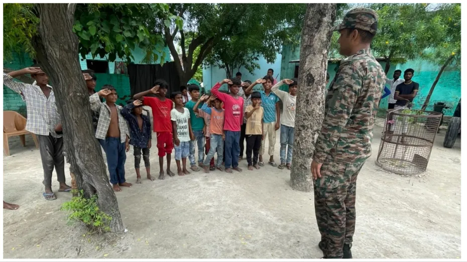 सेना के जवान को बच्चों ने दिया सम्मान