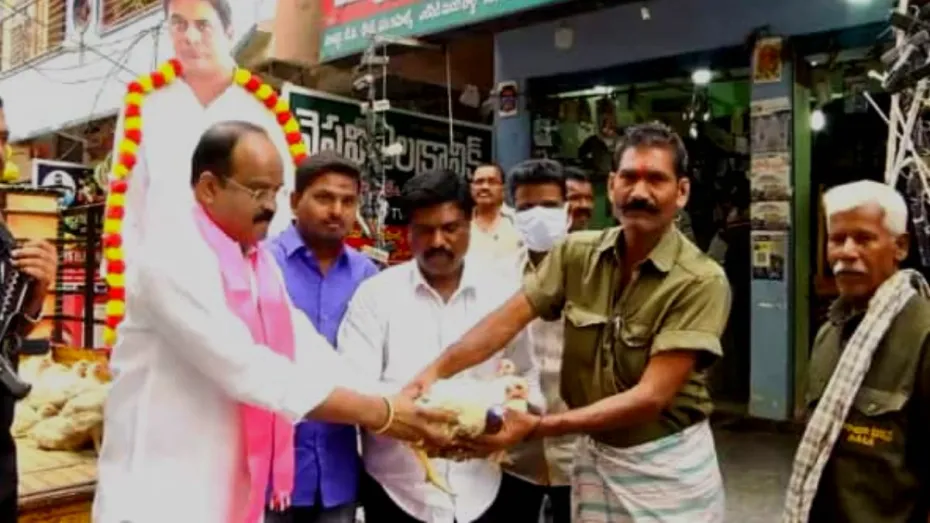 चुनाव के दौरान मुर्गा और दारू बांटने वाले नेता आपको देश भर में मिल जाएंगे। हालांकि, ये सारे काम अंधेरे में या फिर छिपा कर किए जाते हैं। लेकिन टीआरएस नेता को किसी बात का डर नहीं उन्होंने दिन दहाड़े सबके सामने भरे बाजार में लोगों को एक जिंदा मुर्गा और शराब की बोतल बांट दी। हालांकि, तेलंगाना में फिलहाल चुनाव नहीं हो रहे हैं, बल्कि नेता जी ने ये कारनामा सीएम केसीआर के राष्ट्रीय पार्टी लॉन्च करने की खुशी में की है।