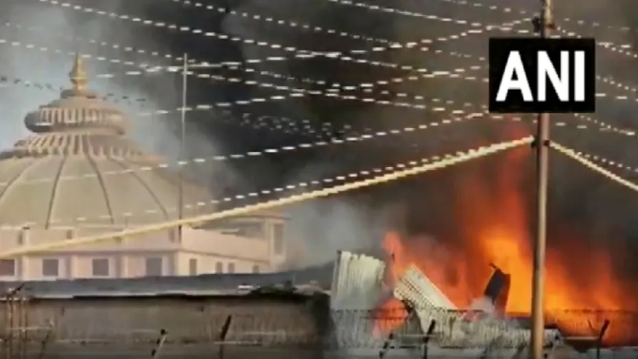 मथुरा: यूपी के मथुरा-वृदांवन स्थित प्रसिद्ध प्रेम मंदिर के पिछले हिस्से में भीषण आग लगने की घटना सामने आई है। आग बुझाने के लिए फायर बिग्रेड की 2 गाड़ियां मौके पर मौजूद हैं।आग इतनी भीषण थी कि कुछ ही देर में पूरा आसमान काला हो गया। वीडियो में आग की भयंकर लपटें दिखाई दे रही हैं। हालांकि मौके पर पहुंचे फायरकर्मियों ने आग बुझाने के लिए पूरी ताकत झोंक दी। खबर लिखे जाने तक किसी के हताहत होने की बात सामने नहीं आई है।