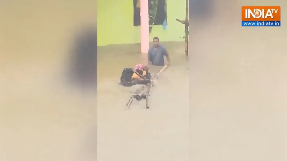 उत्तराखंड के कई हिस्सों में सोमवार को लगातार बारिश जारी रही जिससे कुमाऊं क्षेत्र की नदियां उफान पर हैं, सैकड़ों ग्रामीण सड़कें अवरुद्ध हो गई हैं और चंपावत तथा उधम सिंह नगर जिलों के कई गांवों में भारी जलभराव हो गया है। उधमसिंह नगर में बाढ़ जैसी स्थिति बनी हुई है। यहां से एक वीडियो सामने आया है जिसमें बच्चे को गोद में लिए एक महिला लड़की पर सवार होकर जिंदगी बचाने की जद्दोजहद करती नजर आ रही है। महिला और बच्चा दोनों सुरक्षित हैं।