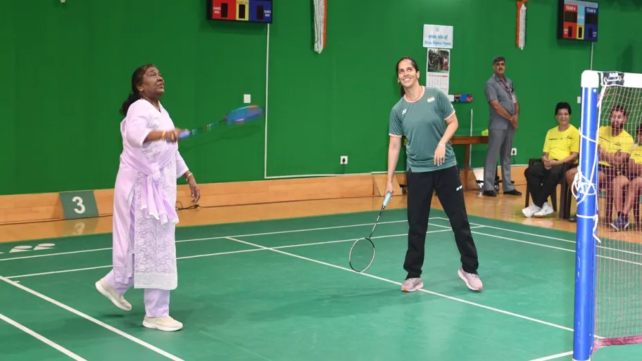 नई दिल्ली: राष्ट्रपति द्रौपदी मुर्मू स्टार बैडमिंटन खिलाड़ी साइना नेहवाल के साथ राष्ट्रपति भवन में बैडमिंटन खेलती नजर आईं। इस दौरान राष्ट्रपति मुर्मू ने अपने खेल से साइन नेहवाल जैसी दिग्गज खिलाड़ी को भी चौंका दिया। राष्ट्रपति मुर्मू और साइना नेहवाल के बीच बैडमिंटन मुकाबले का वीडियो सामने आया है।