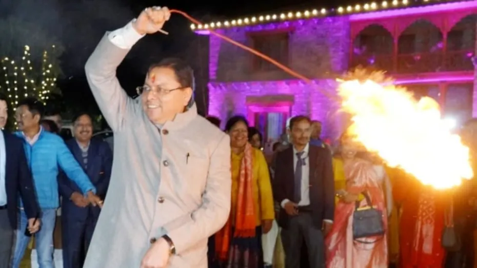 देहरादून: उत्तराखंड की सिलक्यारा सुरंग में फंसे 41 मजदूरों के सकुशल बाहर आने की खुशी में बुधवार को मुख्यमंत्री पुष्कर सिंह धामी की मौजूदगी में पूरे हर्षोल्लास से ईगास मनाई गई। उत्तराखंड में दीवाली के 10 दिन बाद ईगास या बूढ़ी दीवाली मनाई जाती है। हालांकि दीवाली वाले दिन सुरंग हादसा होने तथा उसके बाद फंसे श्रमिकों को सुरंग से बाहर निकालने के प्रयासों के पूरा न होने के कारण मुख्यमंत्री ने त्योहार नहीं मनाया था। मुख्यमंत्री आवास में देर शाम हर्षोल्लास से मनाई गई ईगास में सिलक्यारा सुरंग से बाहर आए मजदूरों के परिजन भी शामिल हुए।