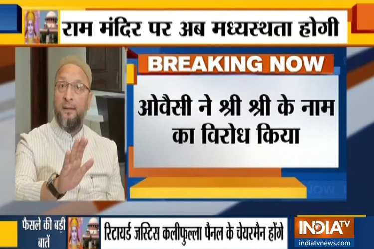 असदुद्दीन ओवैसी ने श्री श्री रविशंकर के नाम पर आपत्ति जताते हुए कहा, 'सुप्रीम कोर्ट ने श्री श्री रविशंकर को मीडिएटर बनाया है। उन्होंने 4 नवंबर 2018 को कहा था कि यदि मुसलमान अयोध्या पर अपना दावा नहीं छोड़ेंगे तो हिंदुस्तान सीरिया बन जाएगा। उन्होंने यह भी कहा कि मुसलमान गुडविल दिखाते हुए इसे छोड़ दें।' ओवैसी ने कहा कि जब इनका कनेक्शन सब्जेक्ट मैटर से है, और उन्होंने अपनी पोजिशन भी साफ कर दी है, तो उन्हें मीडिएटर बनाना निराशाजनक है।