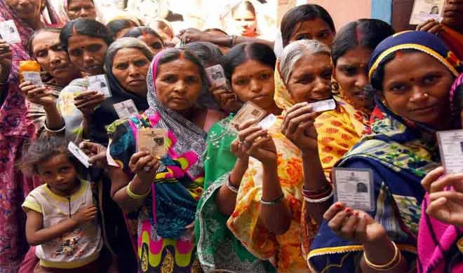 नक्सल प्रभावित नवहट्टा प्रखंड के दारानगर बूथ पर महिला पुलिस महिला मतदाताओं के परिचय पत्र की जांच के बाद ही मतदान केंद्र भेज रही है।