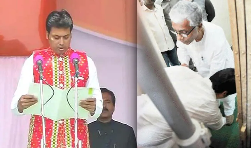 बिप्लब देब ने माणिक सरकार के पैर छूने पर कहा, "मैंने शपथग्रहण समारोह के दौरान माणिक सरकार के पैर इसीलिए छूएं क्योंकि मैं अपनी संस्कृति और परंपरा का आदर करता हूं। हमें त्रिपुरा में विकास के लिए माणिक सरकार जैसे अनुभवी नेता के मार्गदर्शन की ज़रूरत पड़ेगी।" राज्यपाल तथागत रॉय ने असम राइफल्स ग्राउंड में आयोजित एक समारोह में देव को पद एवं गोपनीयता की शपथ दिलाई। प्रधानमंत्री नरेंद्र मोदी और भाजपा अध्यक्ष अमित शाह ने भी इस कार्यक्रम में शिरकत की।