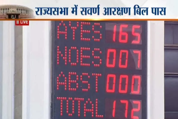 - सवर्ण आरक्षण बिल के समर्थन में 165 वोट पड़े, बिल के खिलाफ 7 वोट पड़े