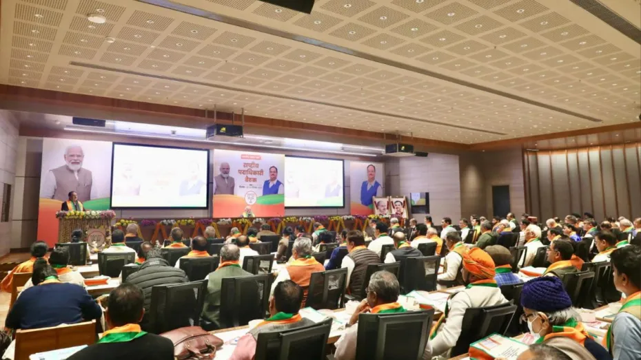 बीजेपी की इस मेगा बैठक का दूसरा दिन है। अज इस दौरान कुल तीन सत्र आयोजित किए जायेंगे। जिसमें मीटिंग की शुरुआत सोशल मीडिया, नमो एप और विस्तारक योजना को लेकर चर्चा की जाएगी। इसके बाद दूसरा सत्र कॉल सेंटर, विश्वकर्मा योजना और पांच राज्यों की रिपोर्टिंग की जाएगी। इसके बाद किसान मोर्चा और युवा मोर्चा की बैठक होगी और इसकी रिपोर्ट बनाई जाएगी।
