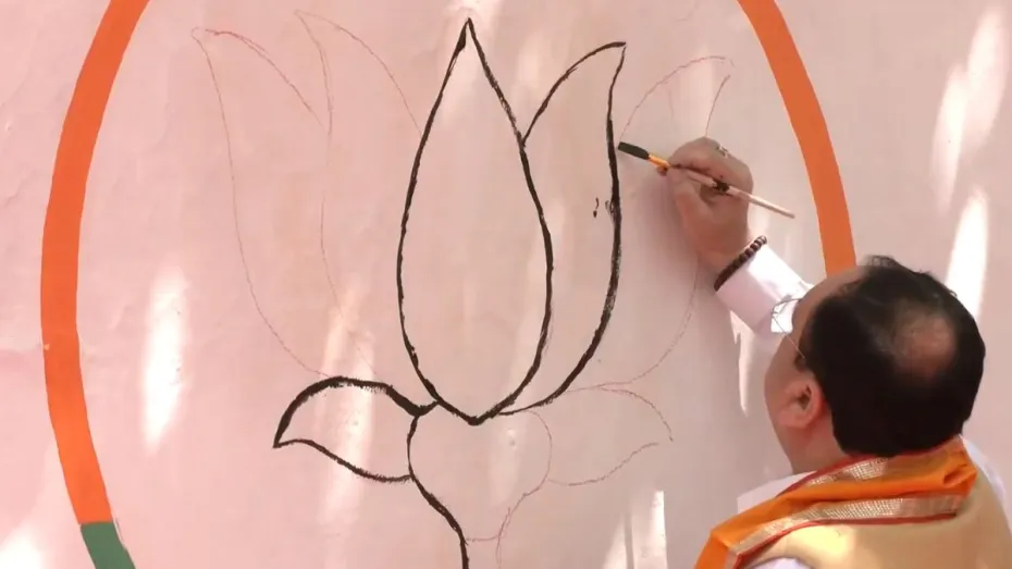भाजपा के 44वें स्थापना दिवस के मौके पर भाजपा के राष्ट्रीय अध्यक्ष जेपी नड्डा का एक वीडियो सामने आया है। इस वीडियो में जेपी नड्डा दिल्ली में पार्टी के चुनाव चिन्ह 'कमल' को पेंट दीवार पर पेंट करते दिख रहे हैं। इस वीडियो में नड्डा बेहद सधे हुए हाथों के साथ दीवार पर कमल उकेरते हुए दिख रहे हैं। कमल पेंट करने बाद जेपी नड्डा ने कहा कि आज पार्टी के स्थापना दिवस पर देशभर में बीजेपी का दीवार लेखन कार्यक्रम शुरू हो गया है। सभी राज्य इकाइयों के प्रमुख भी इस कार्यक्रम का संचालन करेंगे।